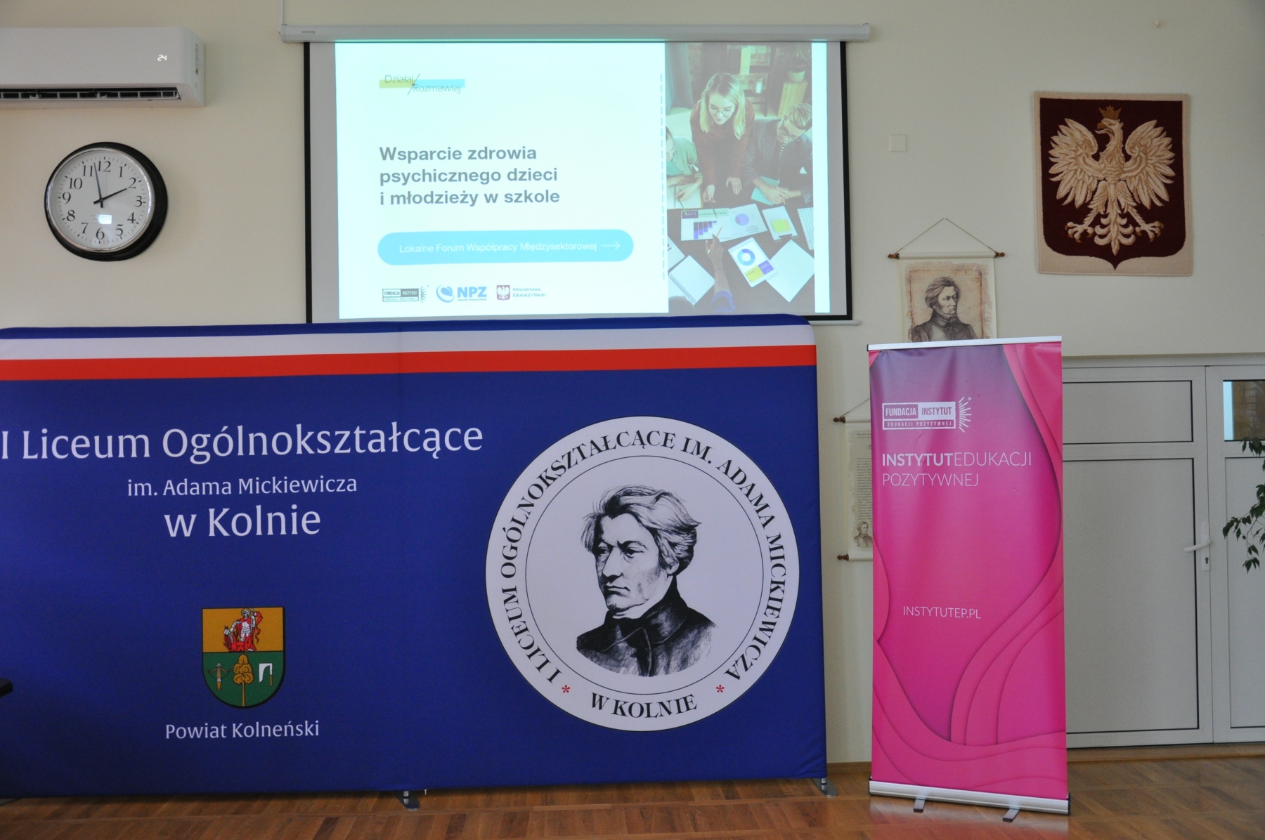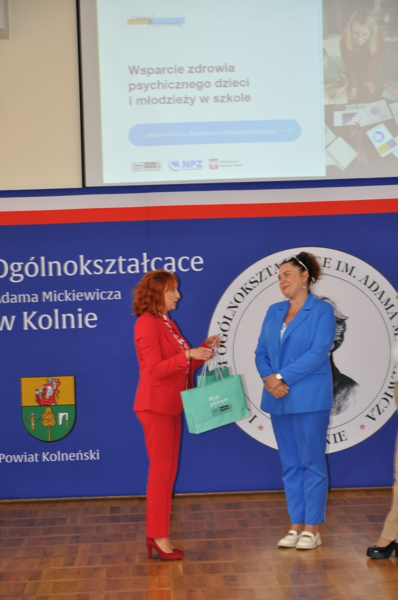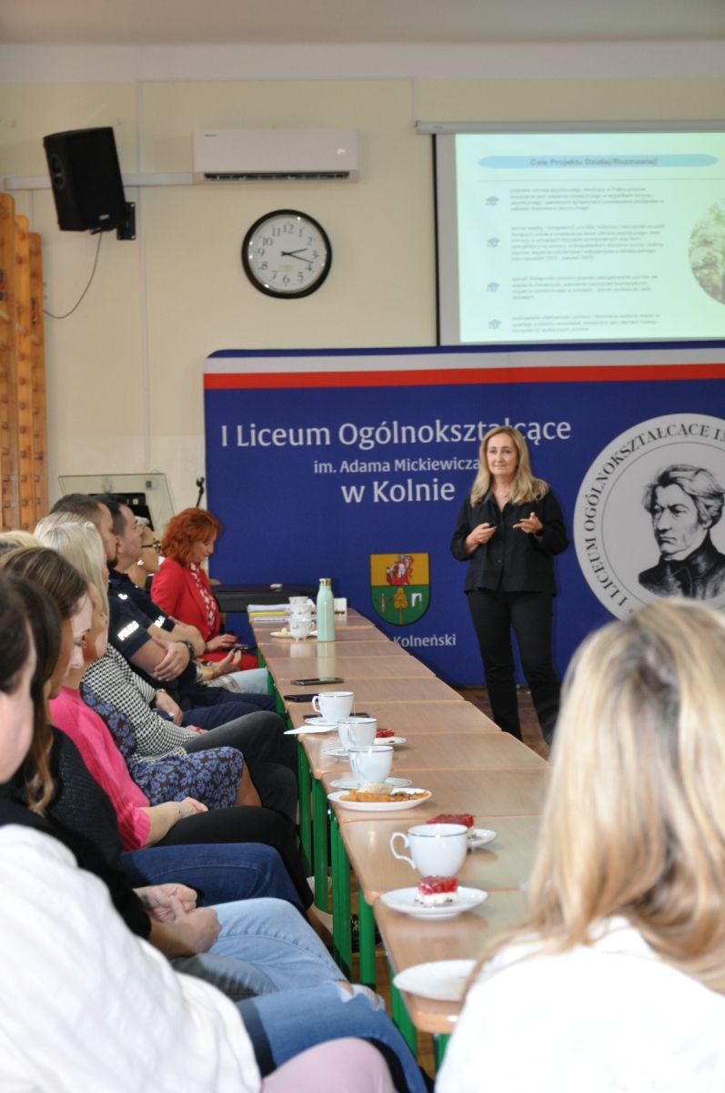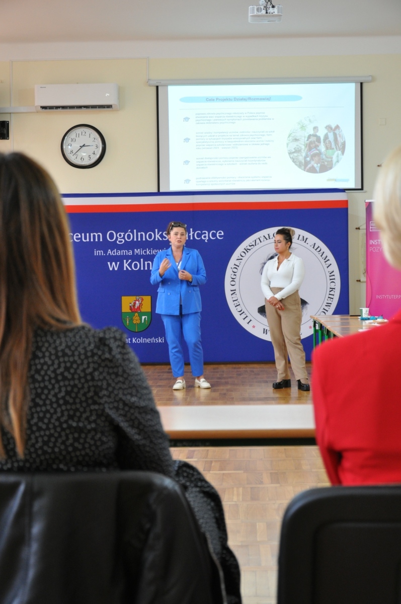 W dniu 1 października 2025 r. w I Liceum Ogólnokształcącym im. Adama Mickiewicza w Kolnie odbyło się Lokalne Forum Współpracy Międzysektorowej, zorganizowane w ramach programu Działaj / Rozmawiaj, współfinansowanego przez Ministerstwo Edukacji Narodowej ze środków Narodowego Programu Zdrowia. W wydarzeniu uczestniczyli przedstawiciele oświaty, ochrony zdrowia, pomocy społecznej, organizacji pozarządowych i samorządów. Spotkanie stało się przestrzenią do wymiany doświadczeń i dobrych praktyk, a także do budowania trwałej sieci współpracy na rzecz dzieci i młodzieży. Forum poprowadziły – Pani Małgorzata Nowicka, Prezes Instytutu Edukacji Pozytywnej, oraz Pani Renata Wiśniewska, ekspert i mediator sądowy.