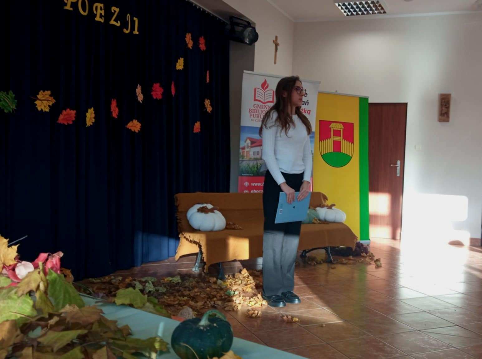 26 października 2025 r. Gminna Biblioteka Publiczna w Czerwonem zorganizowała XVI Edycję Konkursu Recytatorskiego „Jesień w poezji”. Wydarzenie to, jak co roku, zgromadziło miłośników poezji, którzy zaprezentowali swoje interpretacje utworów o tematyce jesiennej.