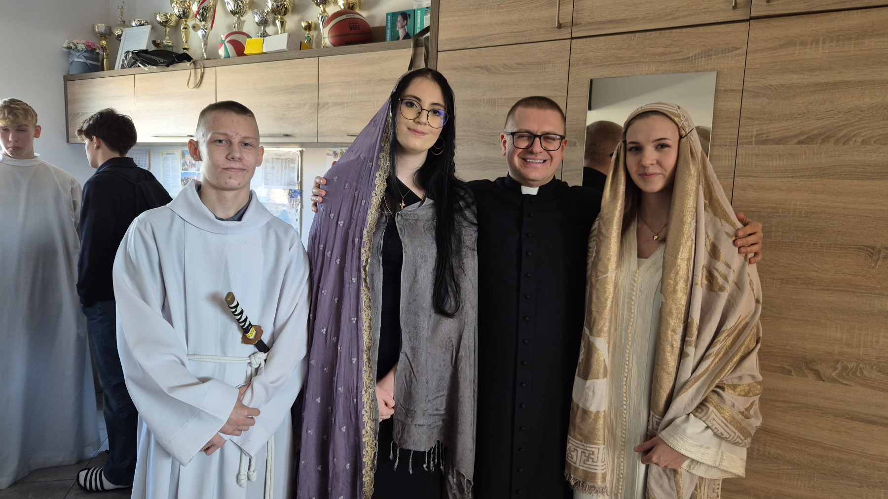 Serdeczne podziękowania kierujemy do księdza Marka za opracowanie scenariusza oraz przygotowanie uczniów do występu. Dziękujemy również młodzieży za ich pracę i zaangażowanie, a także nauczycielom za okazane wsparcie, cierpliwość i życzliwość w realizacji tego pięknego przedsięwzięcia.