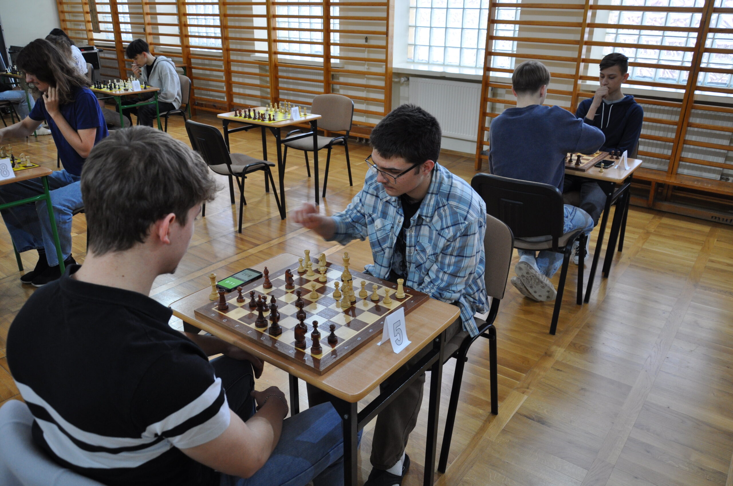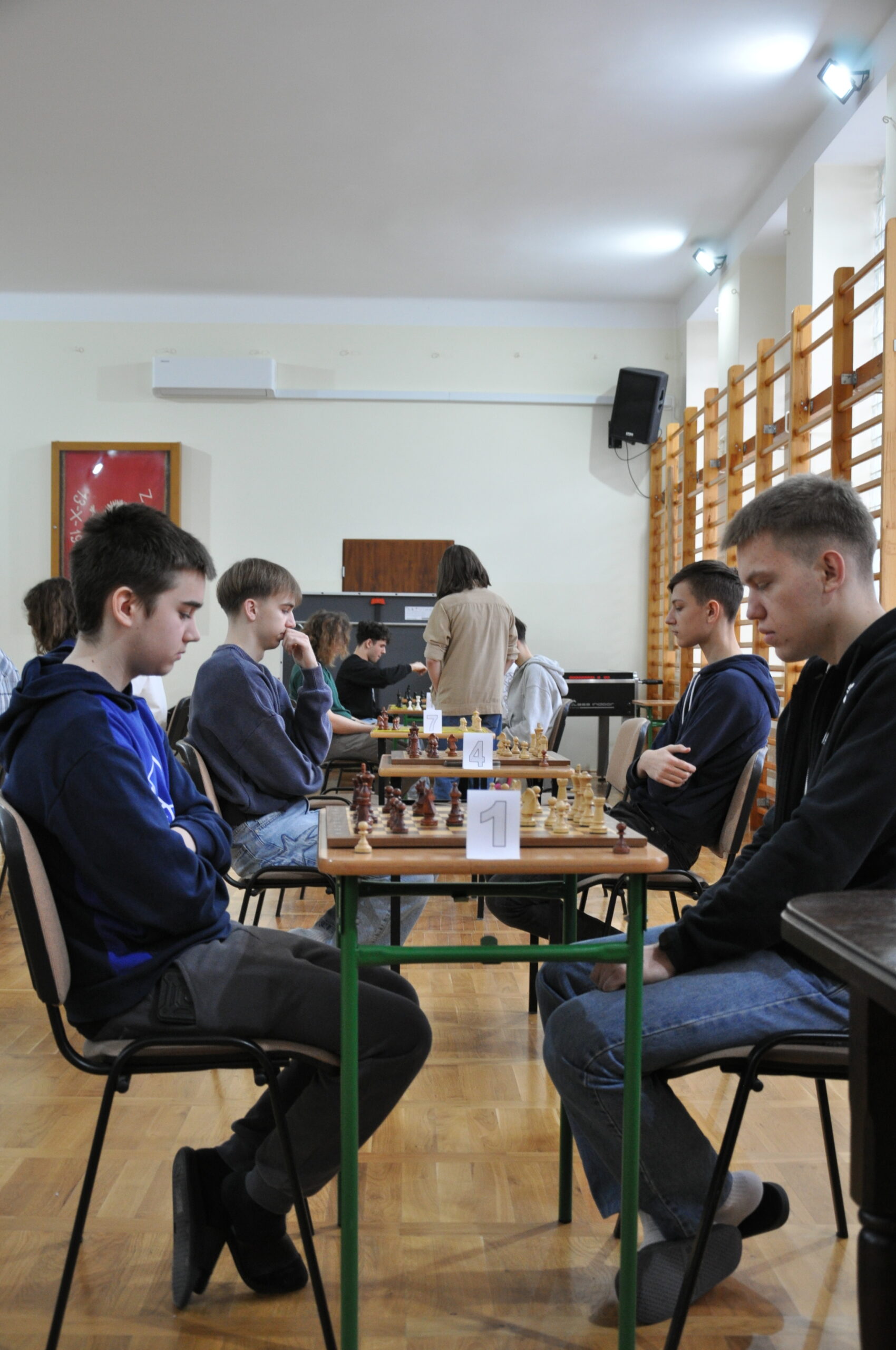 Nad prawidłowym przebiegiem zawodów czuwał Pan Dyrektor, dbając o przestrzeganie zasad i sportową atmosferę. Każda partia wymagała od zawodników ogromnego skupienia, strategicznego planowania oraz umiejętności przewidywania ruchów przeciwnika.