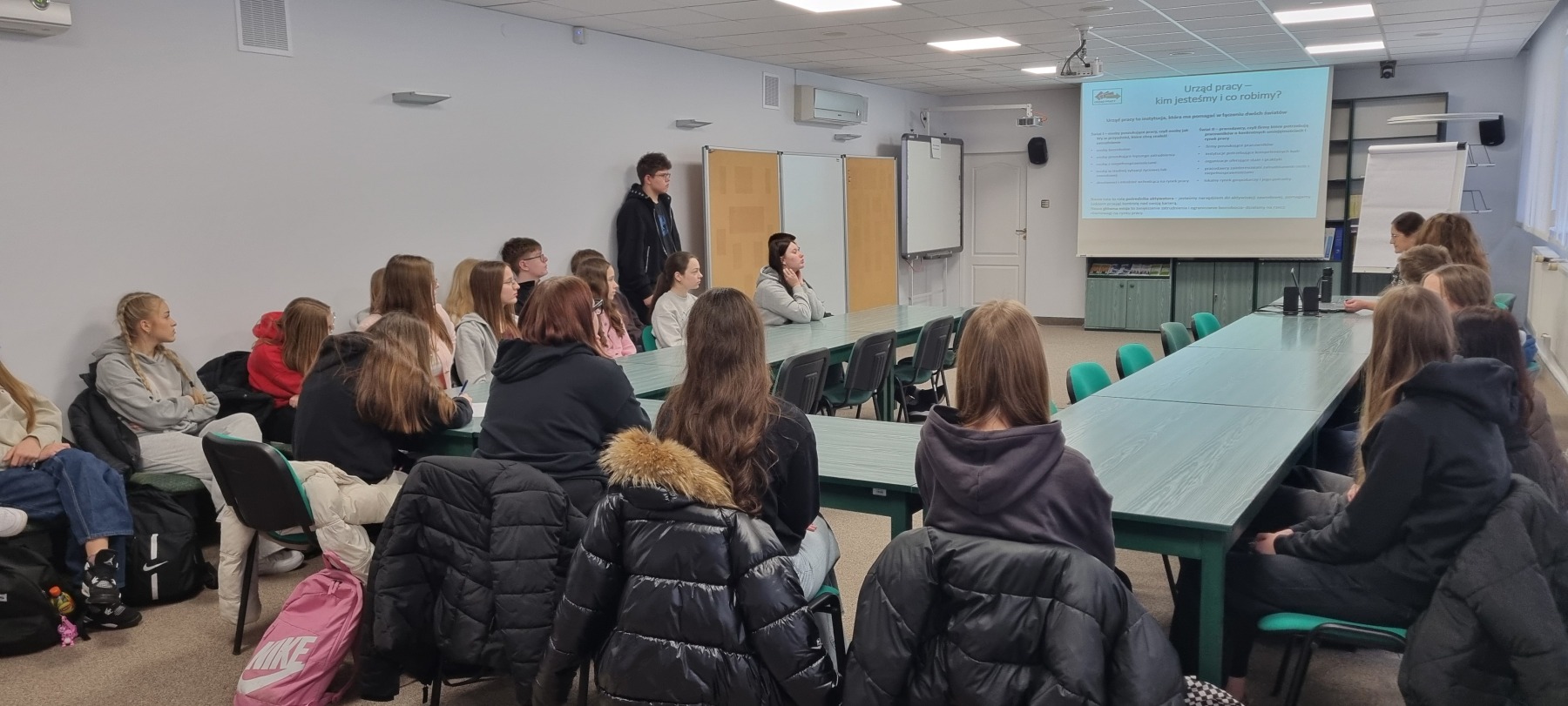 Podczas spotkań doradca zawodowy PUP przedstawiła funkcjonowanie urzędu, jego strukturę oraz realizowane projekty. Uczniowie poznali zakres zadań instytucji, możliwości uzyskania wsparcia po rejestracji w urzędzie pracy, wymagania dotyczące zatrudnienia, etapy rekrutacji oraz korzyści płynące z pracy w tej placówce. Omówiono także rekomendacje dotyczące zawodów przyszłości oraz zasady świadomego planowania ścieżki edukacyjnej i zawodowej.